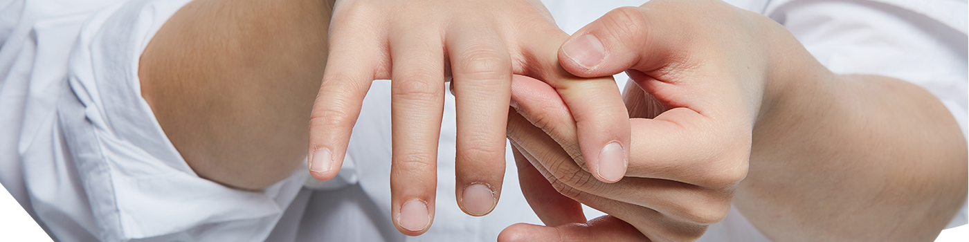 손가락 내부 굴곡건 조직에 염증이 생긴 것으로 힘줄의 중간이 두껍게 되어 힘줄이 지나가는 통로에 걸려 손가락이 잘 안 펴지고, 억지로 펴면 잘 굽혀지지가 않는 증상을 말합니다. 손가락을 펼때 방아쇠를 당기는 듯한 저항감이 느껴지기 때문에 방아쇠 수지라고 합니다.