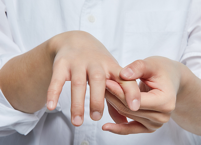 · 손바닥과 손가락이 연결되는 관절 부위(M-P joint) 의 통증 및 부종